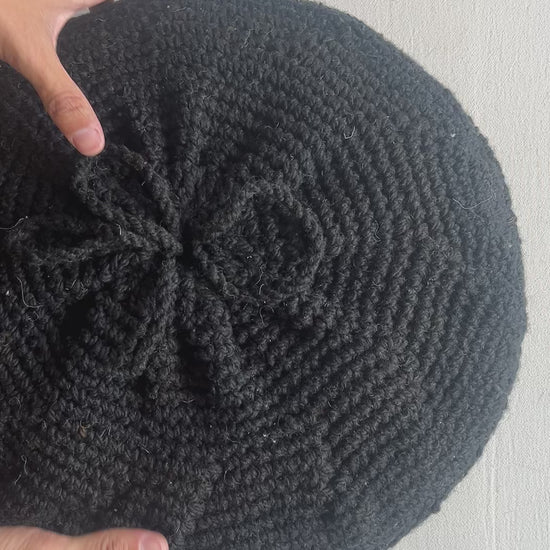 Handwoven round cushion made from pure sheep wool. Crafted by artisans in northern Argentina.