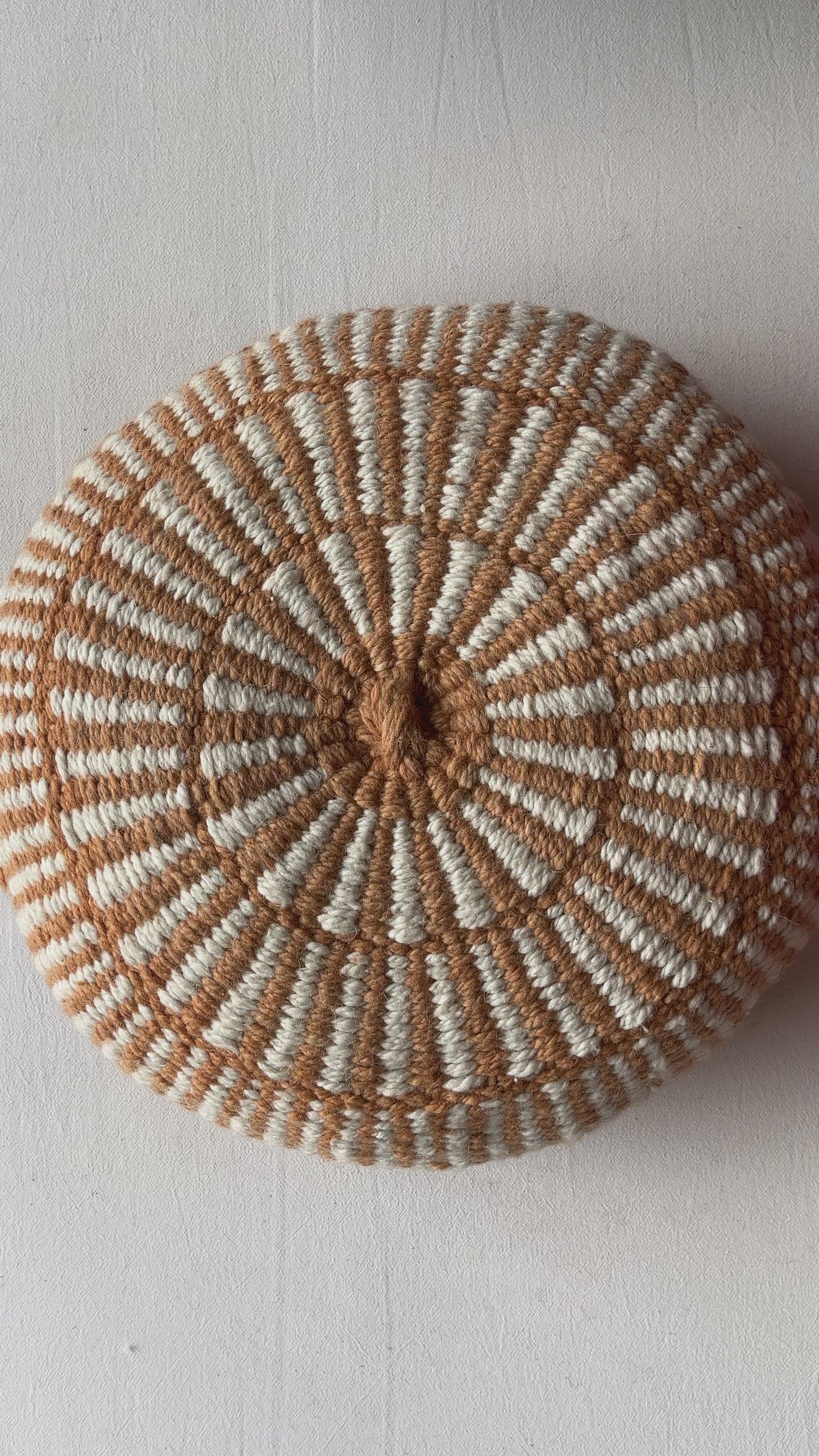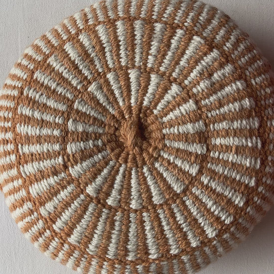 Two-tone round cushion featuring a Comb design, handwoven with pure sheep wool by artisans in northern Argentina.