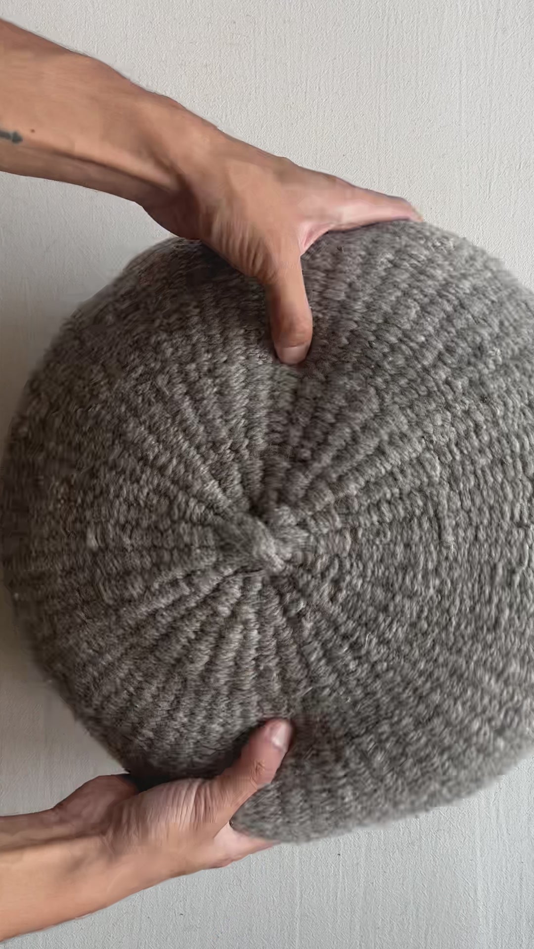 Handwoven round cushion made from pure sheep wool. Crafted by artisans in northern Argentina.