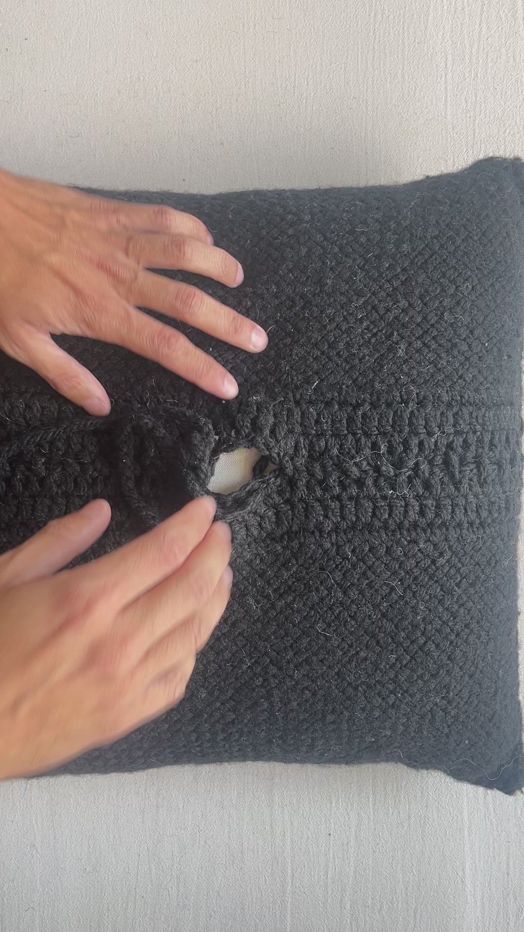 Square cushion, crafted from handwoven sheep wool by artisans in northern Argentina.