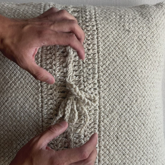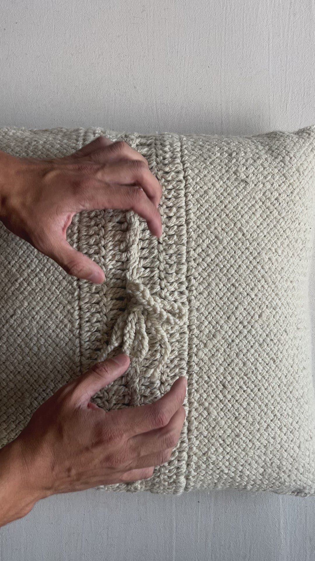 Square cushion, crafted from handwoven sheep wool by artisans in northern Argentina.